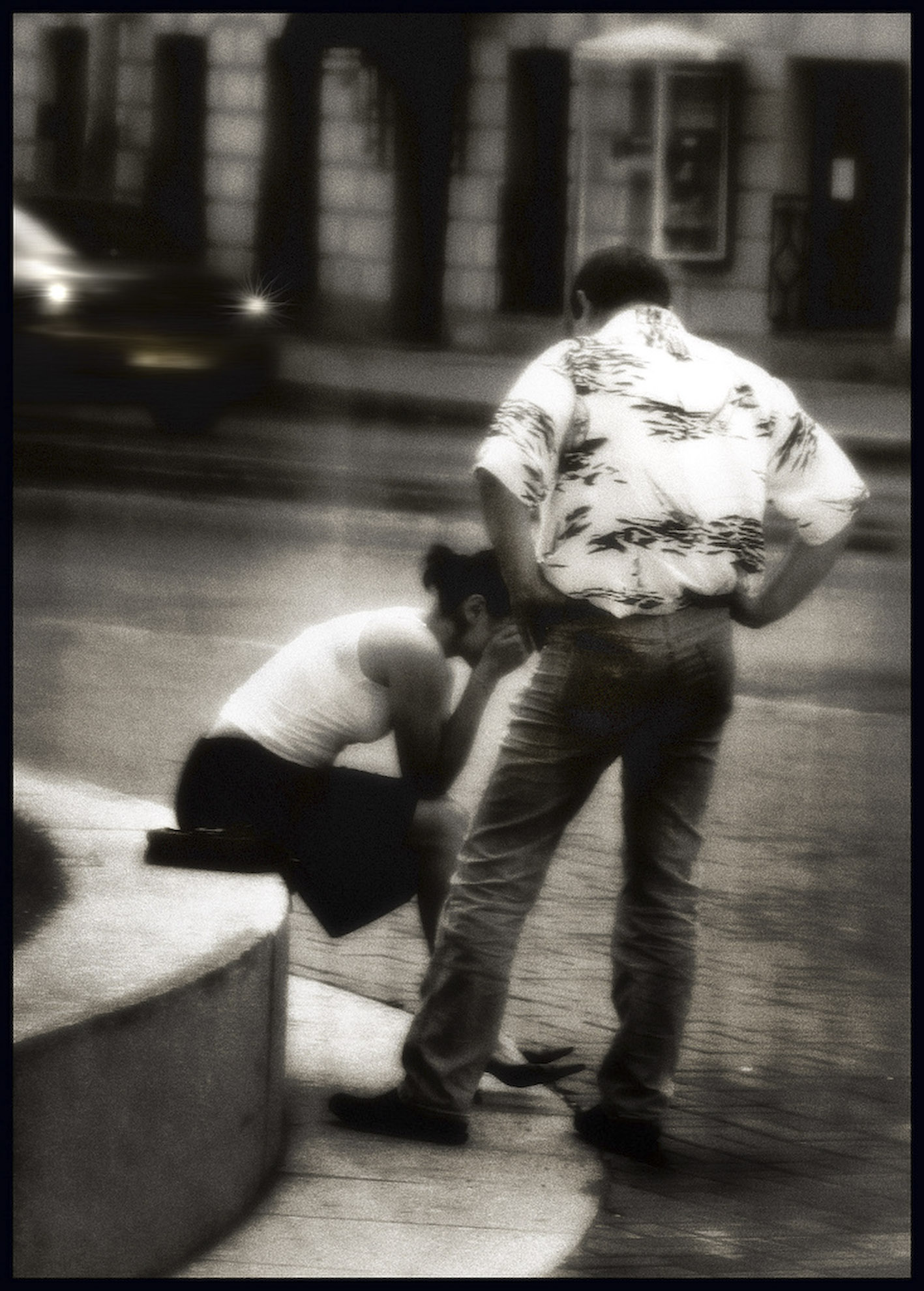 I also love street photography and being on a live wire every second and the absolute rush I get when I see something, have the lens cover off, the camera turned on, and I get THAT Shot. It’s a jolt, it’s real, and it literally pushes me back when I get it. Street photography has taught me about the surprise of getting something in the camera that I never saw in front of me, at least not consciously. I have learned the utmost importance of the punctum in the perfect shot. That in that perfect shot there is one little thing without which the photo loses its power. I love the use of color and the psychology of color, or manipulating the viewer with color, of pushing them where I want them to go, to see what I want them to. I’m writing this but I don’t really feel like I’m saying all that I want to say. I love the absurd and the outrageous; I love the humanity of people, and love people at the fringes of society, the twisted and the perverse, and capturing their humanness. I have always felt that to take a photo of someone who looks outrageous, a punk with tattooed face and rings is easy, Helen Keller could shoot that just like shooting a sunset or a Frank Ghery building because it is the tats, the sunset, and the building that are interesting, not the photo My goal is to take a great photo of the most mundane and grey person and conversely photograph someone on the farthest edge and shoot them in a way that their humanness shines through. It’s all about being compassionate for my subjects, what ever that subject is at the moment I click the shutter.